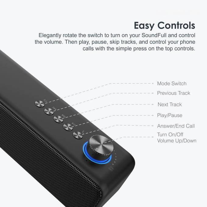 Elegantly rotate the delicate vacuum coating switch to turn on your SoundFull. Then play, pause, skip tracks, and control your phone